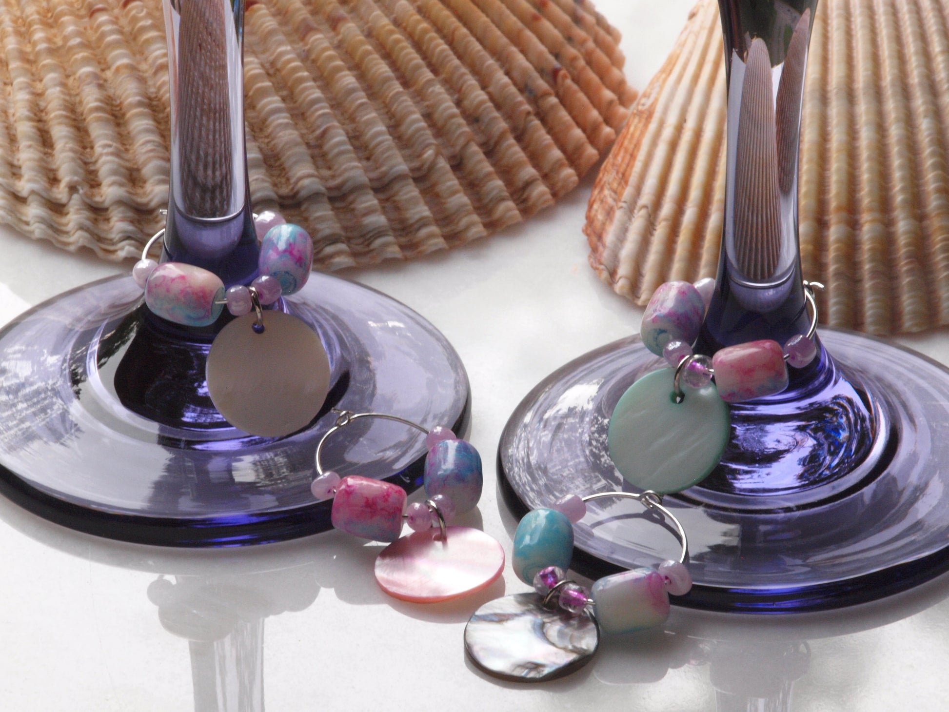 These beautiful pastel shell and glass beaded wine glass charms add just a touch of the beach to any celebration!