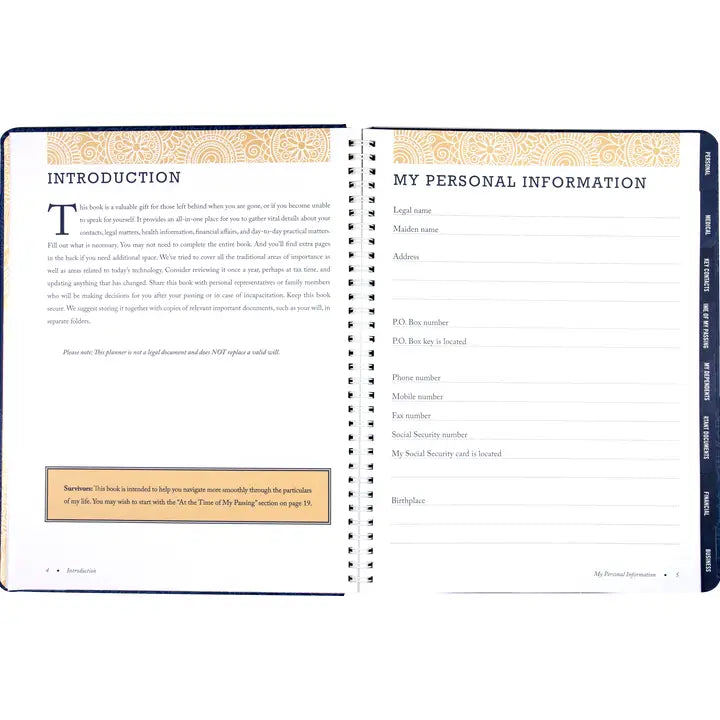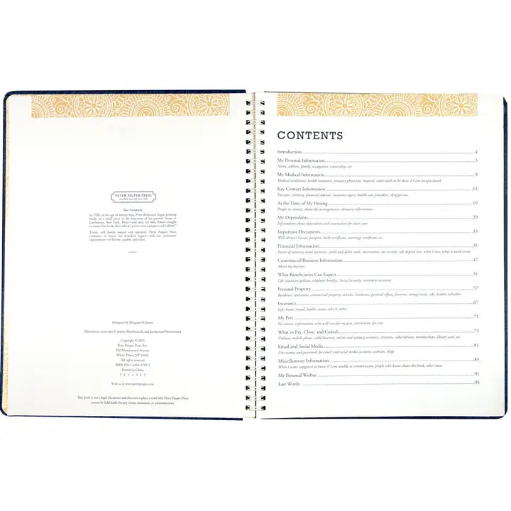 Yes, it has a quirky cover design that will appeal to certain sensibilities, but the contents of this peace-of-mind planner are no-nonsense. Use it to gather those vital details about your contacts, legal matters, health, financial affairs, instructions, and more. Enter the information in this guided planner, and keep it in a secure location. Valuable and practical, it is a tremendous gift for your family and personal representatives. The I'm Dead, Now What? Planner covers: My Personal Information My Medical Information Key Contact Information At the Time of My Passing My Dependents Important Documents Financial Information Commercial/Business Information What Beneficiaries Can Expect Personal Property Insurance My Pets What to Pay, Close, and Cancel Email and