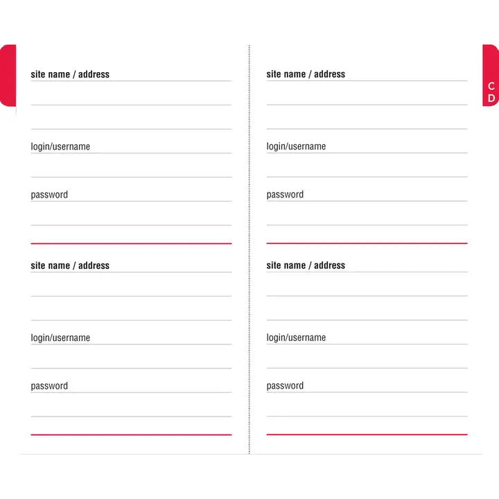 You asked -- we listened! Finally, an internet password organizer in Extra Small! Mini volume fits in a shirt pocket! This time-saving, headache-preventing logbook features: Tabbed alphabetical pages that provide space for noting website addresses, usernames, passwords, and extra details. There are also pages in the back for recording additional information about your computer system. The removable cover label and plain black logbook covers help keep your organizer discreet. Mini logbook measures just 3-1/8'' wide x 5-1/4'' high. 144 pages.